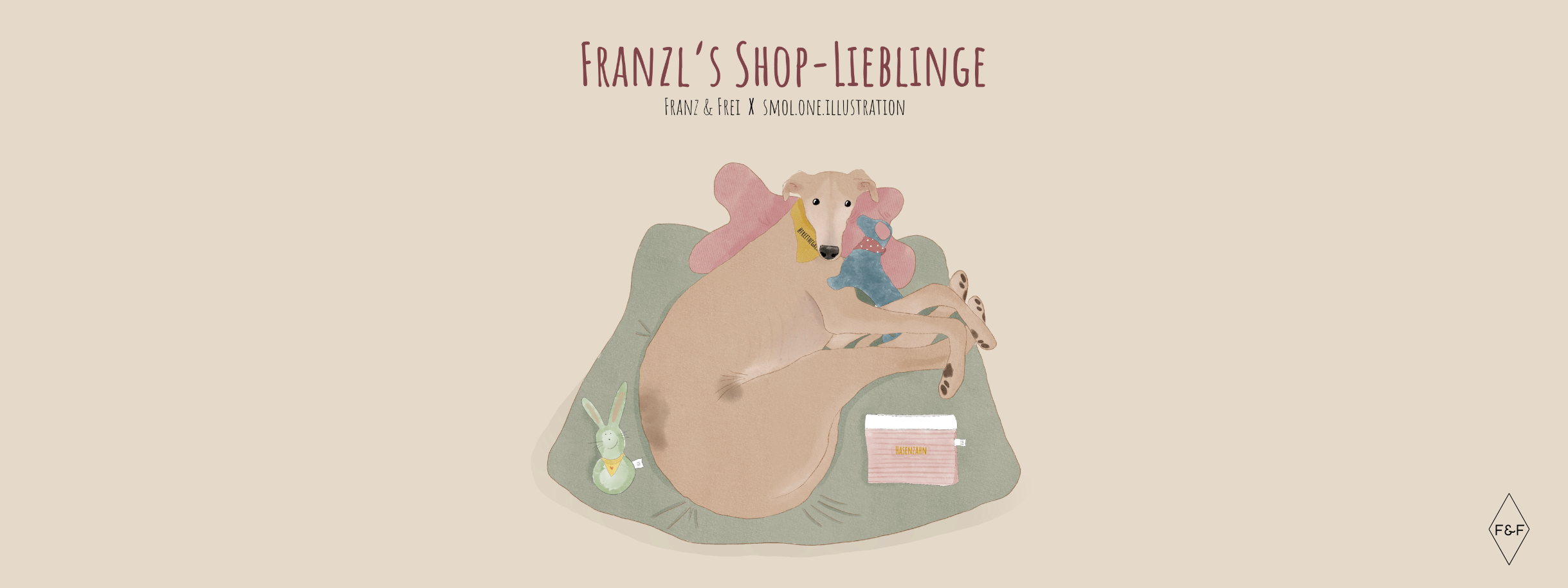 Franzl. Der spanische Windhund, der in München die Freiheit gefunden hat. In Spanien werden diese Hunde im Schatten geboren. Aber sie sind für das Licht bestimmt. Und so kam Franzl zu uns. Es stand fest: sein Leben soll rundum schön und bequem sein. Und wie kann man das besser sicherstellen, als mit Dingen, die man extra für ihn selbst näht? So begann ich also zu nähen. Und so begann die Geschichte von Franz&Frei.